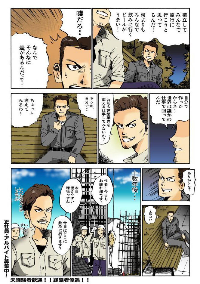 株式会社俊高建設工業では、会社拡大につき、職人さんの採用に力を入れています。